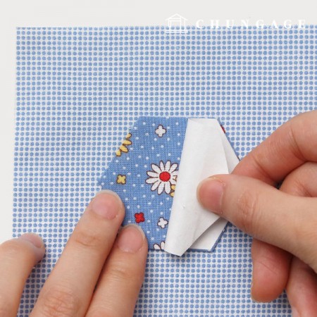 원단과 맞닿게 놓고 다림질하면 부착됩니다.