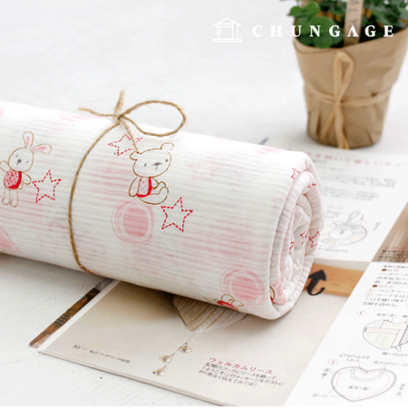 백아이보리 바탕색에 핑크 토끼와 곰돌이가 너무 예쁜 원단입니다.