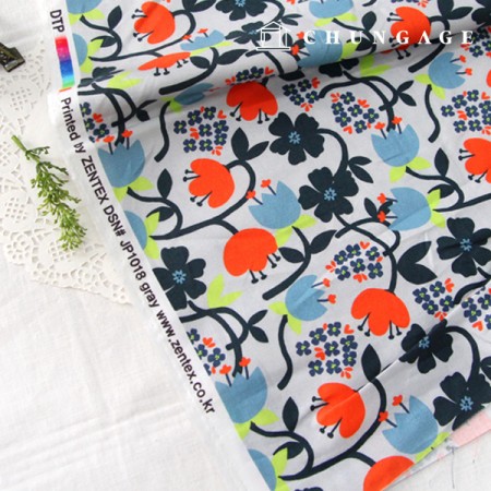 면원단 나염 DTP 20수 평직 북유럽 플라워
