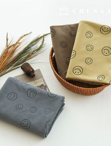 다양한 크기의 스마일이 그려진 골덴원단으로