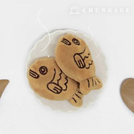 봉제식 와펜 입체 브로치장식 갓구운 붕어빵 반제품