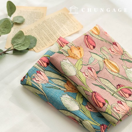 린넨원단 코튼 린넨천 빈티지 꽃무늬 플라워 대폭 천 보타닉튤립 2종