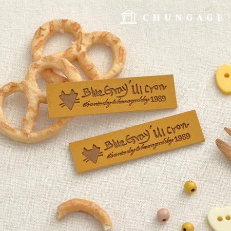 가죽라벨 빈티지라벨 마이캣 야옹이 옐로우 58642