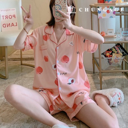 잠옷 반팔 반바지 셔츠 상하의 세트 수면잠옷 파자마 1003 피치핑크 25
