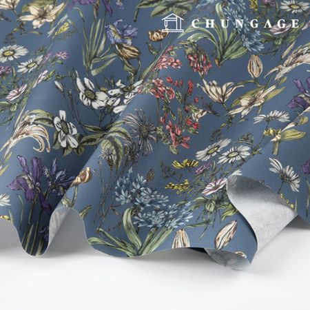 옥스포드원단 면 20수 친환경 DTP 대폭 보테니컬가든 블루아이스 MOXYS3005