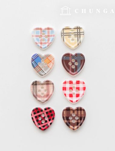 귀여운 체크패턴의 하트 모양 단추 입니다.