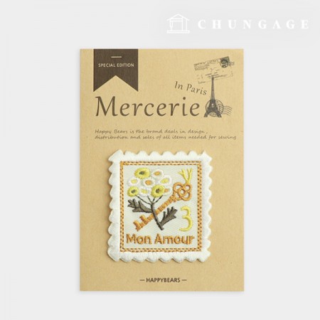 열접착와펜 빈티지 플라워 우표 자수 옐로우 65662