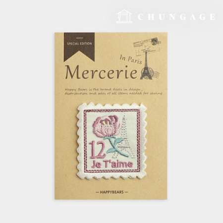 열접착와펜 빈티지 플라워 우표 자수 핑크 65661