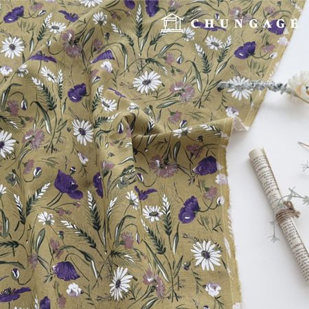 린넨원단 15수 바이오워싱 꽃무늬 플라워 대폭 올리브 브리즈