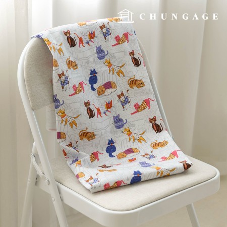 다채로운 색감과 아기자기한 고양이 일러스트가 돋보이는 원단이에요.