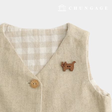 빈티지 우드단추 고양이 나무단추 68236