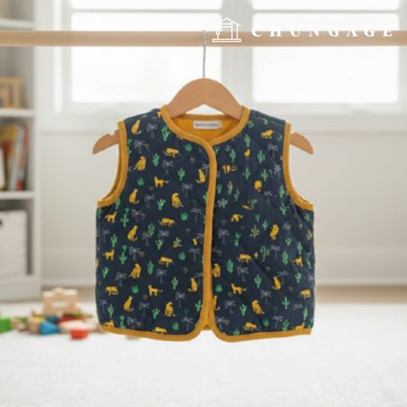 네이비 컬러위에 치타와 이국적인 식물패턴이
