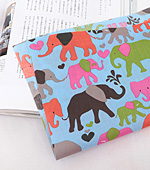 소라 컬러에 귀여운 코끼리 패턴이 프린트 된 면혼방 원단입니다.
