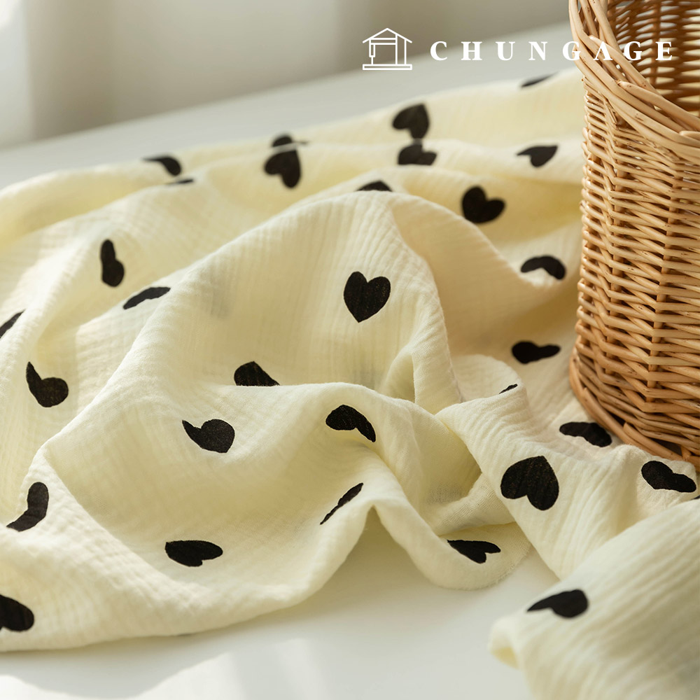 - home > 棉布-格子佈、紗布、asa布、牛津布、帆布布、裁剪支撐布、蕾絲布、繡花布、 > 4) 紗布/60% Asa/多臂布 > Yoru 雙層紗布 棉 無螢光 生物洗滌 黑色愛心 2 種