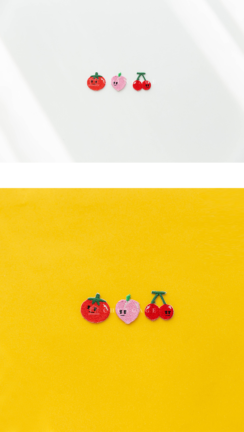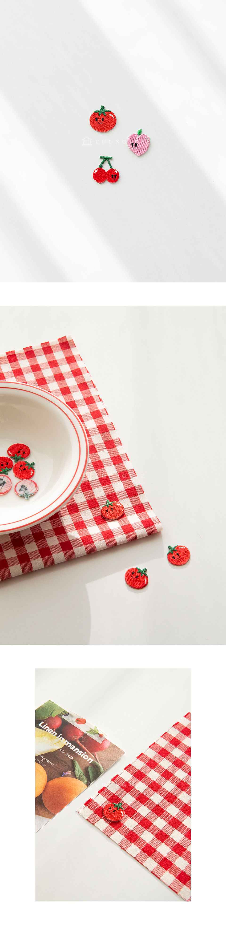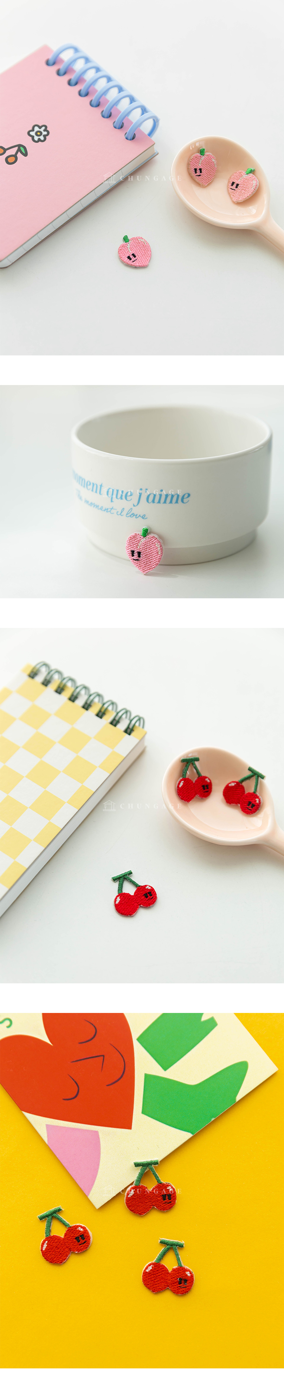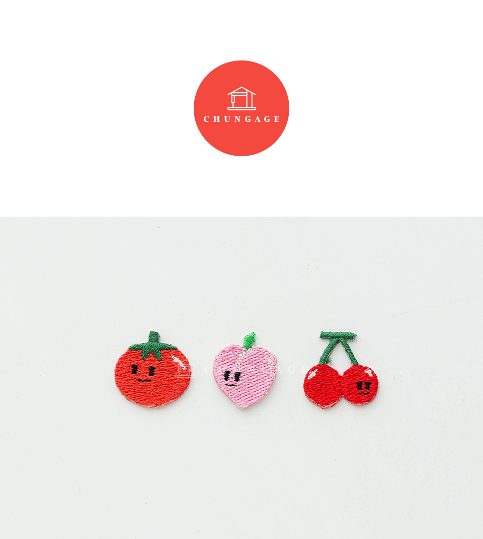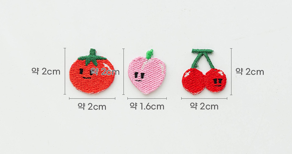- home > 輔料 - 縫紉線, 拉鍊, 針, 斜線, 威化筆, 轉印紙, 標籤, 窗簾料, 韓服 輔料, 書籍, 棉花, 圖庫 > 11) 標籤/Wappen/Deco 裝飾 > 3]粘性經線筆 > 3種熱封瓦彭 迷你水果瓦彭