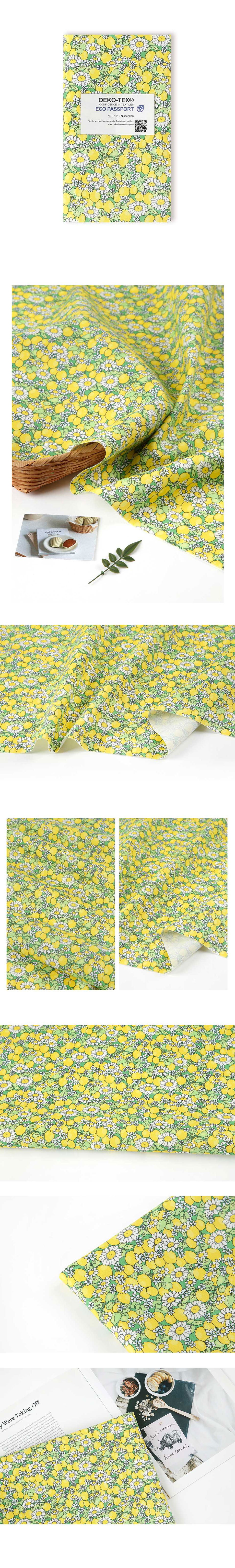 - home > 棉布-格子佈、紗布、asa布、牛津布、帆布布、裁剪支撐布、蕾絲布、繡花布、 > 1) 純棉平紋布料(20-30支) > 環保抗菌消炎布料 E-DTP 棉 20 枝檸檬雛菊